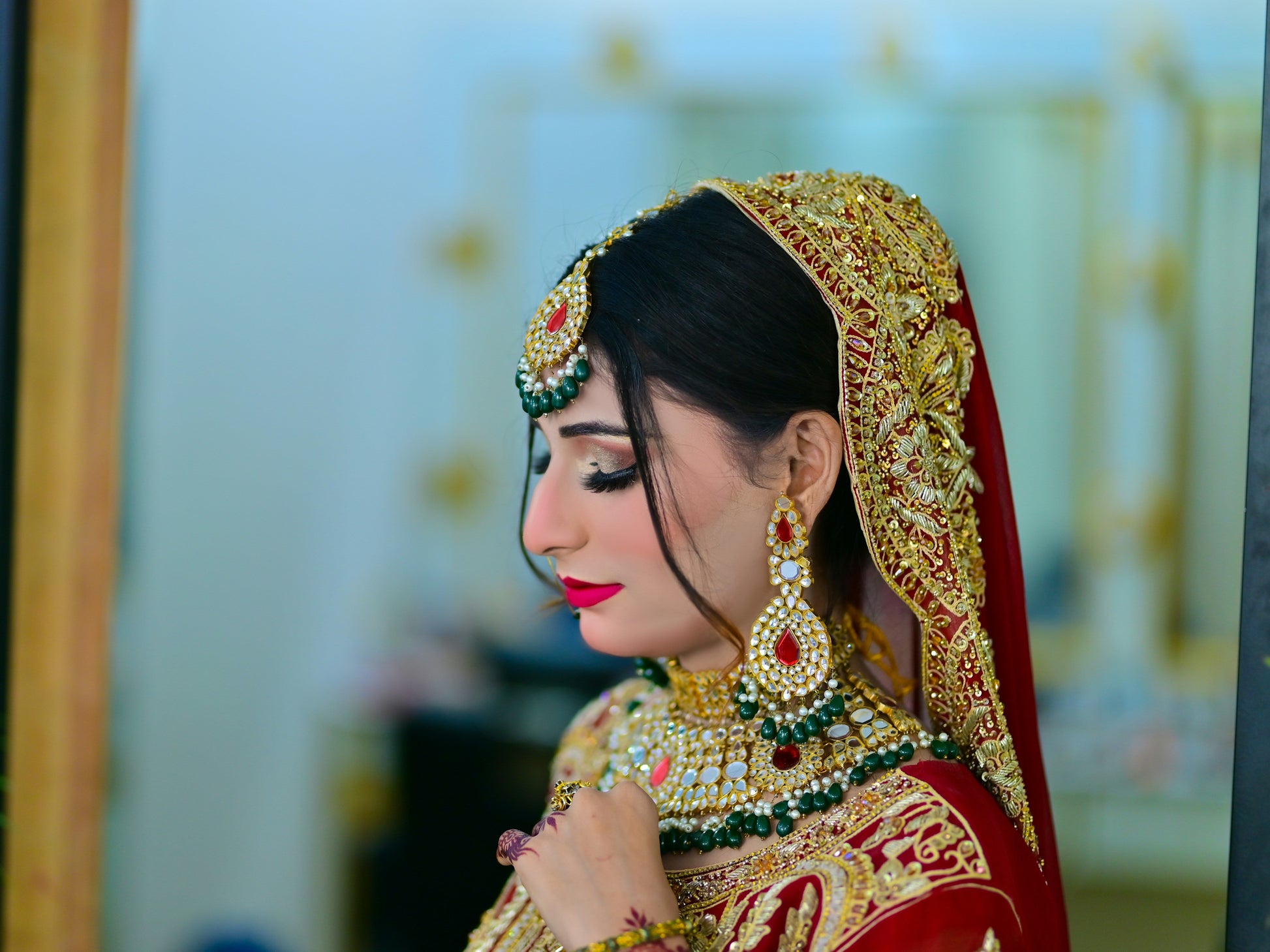 Includes full bridal makeup, hairstyling, draping, and touch-up kit. Duration: 3–4 hours. Products: MAC, Huda Beauty, Dior.